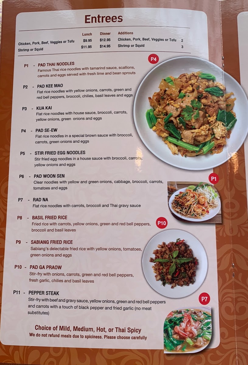 Introducing a delightful culinary experience, Sabiang Thai located at 4239 NE Fremont St, Portland, OR, offers an exquisite menu that reflects the rich flavors of Thailand. Diners can explore a variety of authentic Thai soups, including the aromatic Tom Yum and creamy Tom Kha, perfect for warming the soul. For noodle enthusiasts, the selection spans from classic Thai Noodle Soup to the indulgent Duck Noodle Soup, each crafted with freshness in mind.